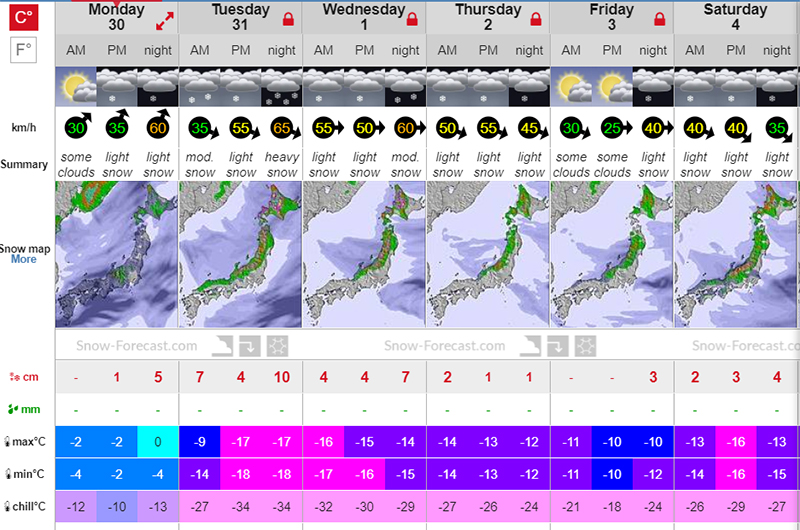 The first week of 2020 is forecasted to bring what all of the powder hungry skiers and snowboarders are waiting for: LOTS OF SNOW! A wintery weather blast will arrive in Niseko on Tuesday, December 31st with heavy snowfall and high winds predicted. Snow is also in the forecast every day throughout the following week, so we are expecting amazing conditions to start the new year.