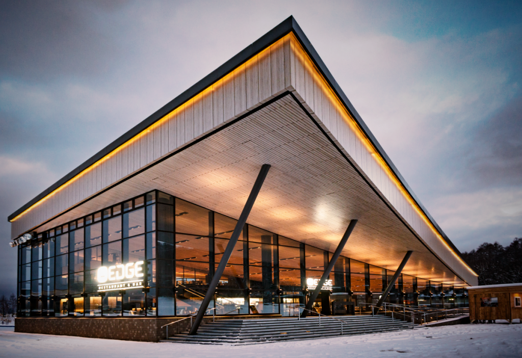 Located right next to the base of Hanazono Hooded Lift #1. Enjoy the warmth of wood in a spacious, glass atrium that blends with the slopes. This two-story venue offers 600 seats and lets you enter in your ski boots.