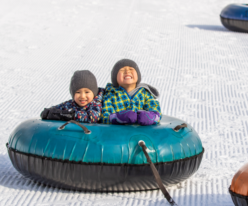 スノーモービルツアーやチュービング、ジップライン、屋内キッズパーク「Galaxy of Kidz」まで、家族とアクティブ派に人気のエリア。